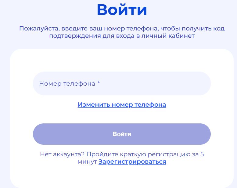 - Введите номер телефона, указанный при регистрации, и подтвердите вход кодом из SMS.